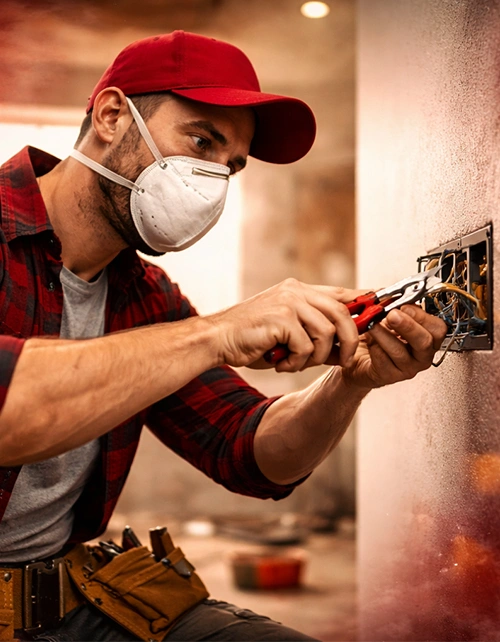 Outlet/receptacle replacement (GFCI, Duplex, Appliance), Switch/toggle replacement (Single-pole, Three & Four way, Dimmer), Surface/track open and closed wall wiring, Light fixture replacement (Surface, Ceiling, Recess, Cabinet), Light bulb replacement (Led, Fluorescent, Quartz halogen), Appliance installation, Baseboard heating and thermostat, Smoke detector & Carbon monoxide installation, Low voltage (Thermostat, Yard lighting, Door bell)