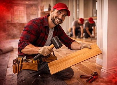 Laminate vinyl plank (LVP) tongue and groove/floating, Vinyl plank glue down, Linoleum, Ceramic tile, Painting, Staining, Finishing, Cleaning, Buffing, Stripping & Waxing, Minor carpet replacement, Covering & underlayment removal, Sub floor repair and raised Sub floor installation, Loose and squeaky floorboard & stair trend repair, One piece & built up base molding, Vinyl cove base and quarter round (shoe molding)